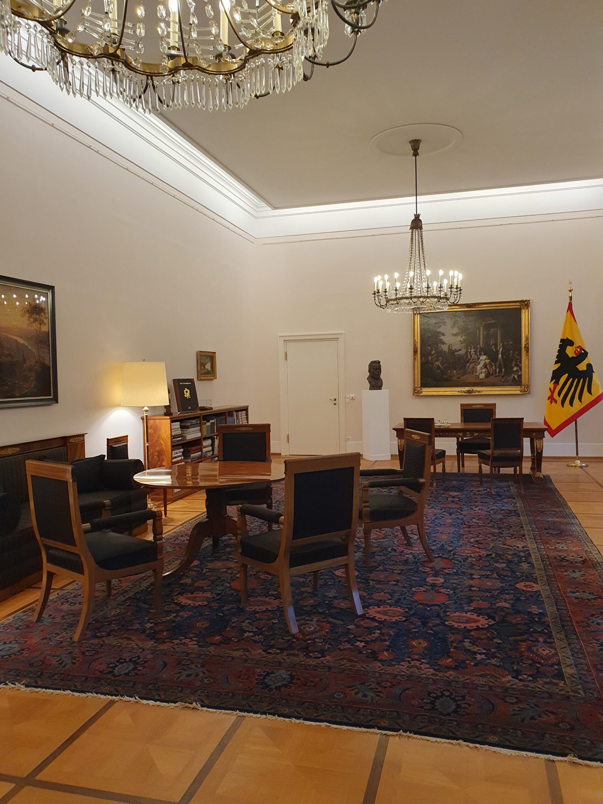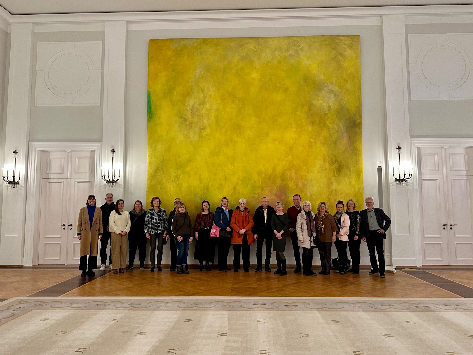 Schon beim Betreten vom Schloss Bellevue wehte den Besucherinnen und Besuchern weihnachtliche Stimmung entgegen: Lichterglanz, festlicher Schmuck und die ganz besondere Atmosphäre des Amtssitzes des Bundespräsidenten. Während Frank-Walter Steinmeier selbst zu dieser Zeit auf Staatsbesuch in Großbritannien war, durften die Gäste des FREUNDESKREISES einen exklusiven Blick in sein Amtszimmer werfen. Die Führung bot spannende Einblicke in die Aufgaben des Staatsoberhauptes und die Abläufe hinter den Kulissen. Gleichzeitig war es eine wunderbare Gelegenheit, die Arbeit der Deutschen Stiftung für junge Erwachsene mit Krebs vorzustellen. Besonders die Kampagne „Recht auf Vergessen“ fand großes Interesse – ein wichtiges Thema, bei dem die Stiftung bereits mehrfach Unterstützung aus dem Bundespräsidialamt erfahren hat. Schon zum 10-jährigen Jubiläum würdigte Elke Büdenbender, die Frau des Bundespräsidenten, das Engagement der Stiftung in einem Grußwort.