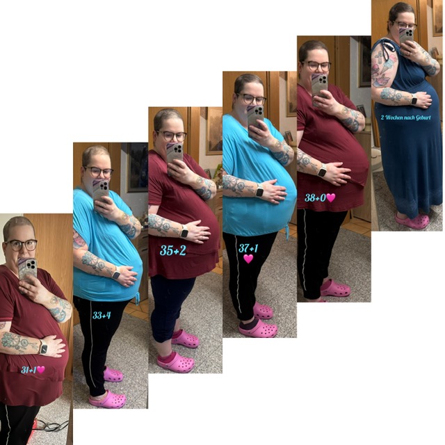 Im Mai 2024 machte ich mit 31 Jahren einen positiven Schwangerschaftstest. Ich konnte es kaum glauben, dass es wirklich endlich so weit sein sollte – ich hatte lange darauf gewartet. Bis zur Bestätigung beim Frauenarzt dauerte es aber noch ein paar Wochen. Der Tag kam und ich war überglücklich. Mein Mann und ich fuhren noch in den Urlaub. Dort bemerkte ich einen großen Knubbel an meiner rechten Brust bzw. zwischen Brust und Achselhöhle. Ich dachte mir aber erst mal nichts groß dabei, weil ich zu dem Zeitpunkt etwas erkältet war und deswegen vielleicht ein Lymphknoten geschwollen war. Von meiner Hausärztin wurde ich zur Frauenärztin geschickt. Ein Ultraschall wurde gemacht und vorsichtshalber eine Stanze, um zu schauen, was da los ist. Der Arzt sagte, es könnte von der Schwangerschaft eine Ansammlung von Flüssigkeiten sein, sähe aber eher nicht danach aus. Eine Woche später, mittlerweile in der 17. Schwangerschaftswoche angekommen, bekam ich den Anruf, ich solle bitte vorbeikommen, um die Ergebnisse zu besprechen. Ich kam dann kurze Zeit später an und plötzlich hieß es: „Es handelt sich um einen bösartigen und schnell wachsenden Knoten, der ca. 30-40mm groß ist“.